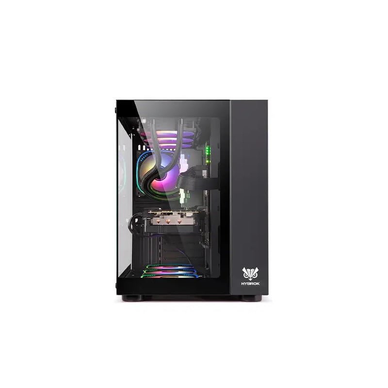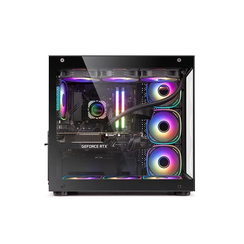 Boîtier moyen tour avec support E-ATX/ATX/M-ATX/ITX, fenêtre en verre trempé, et structure en plastique ABS et maille métallique + 7 Fans ARGB