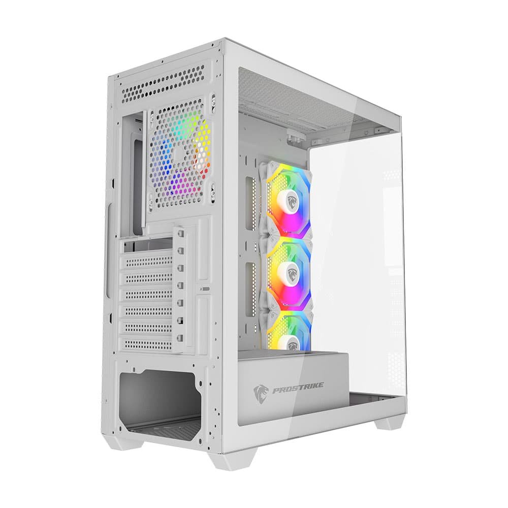 🖥️ ProSTRIKE VORTEX WHITE 4 Ventilateurs ARGB – Boîtier PC Moyen Tour ATX